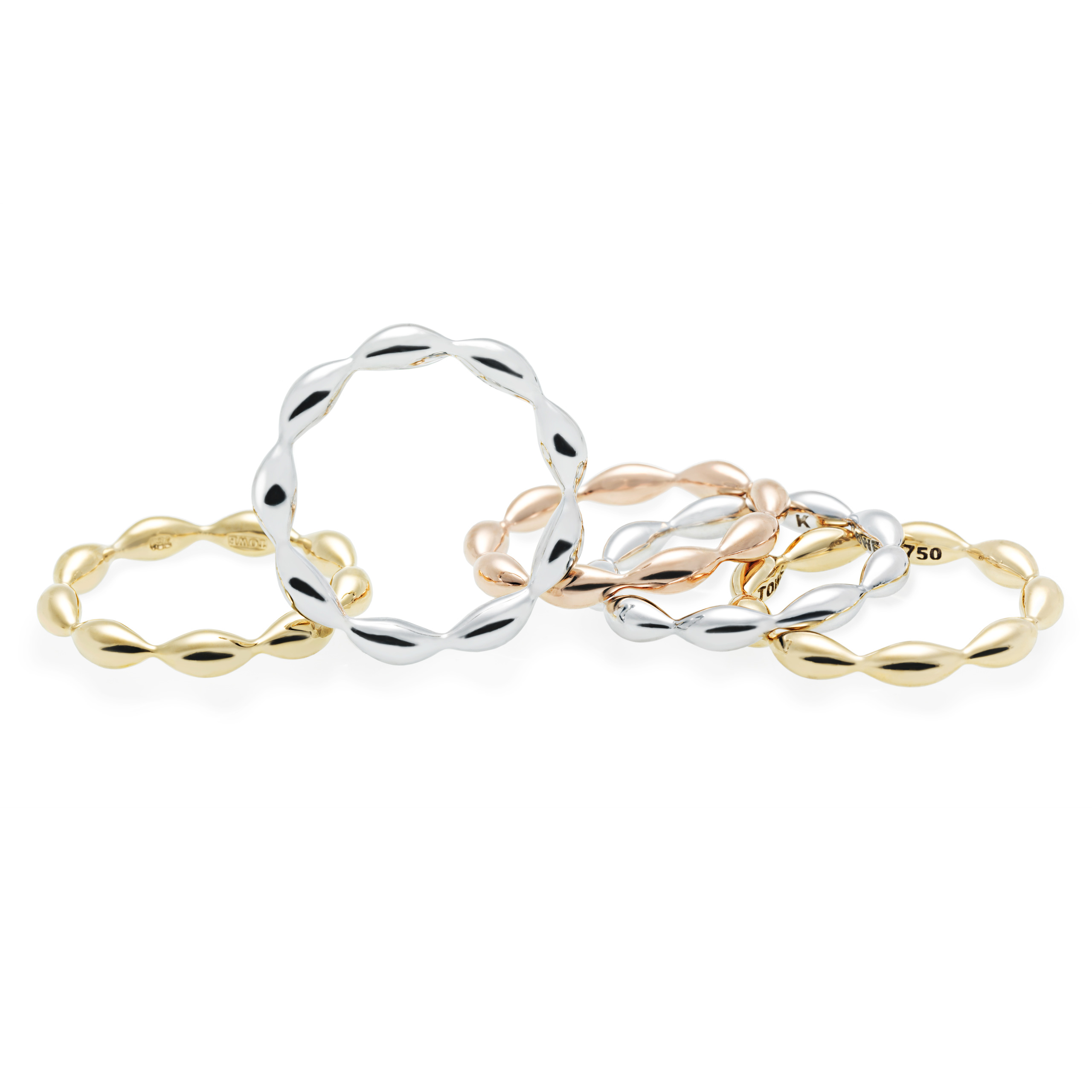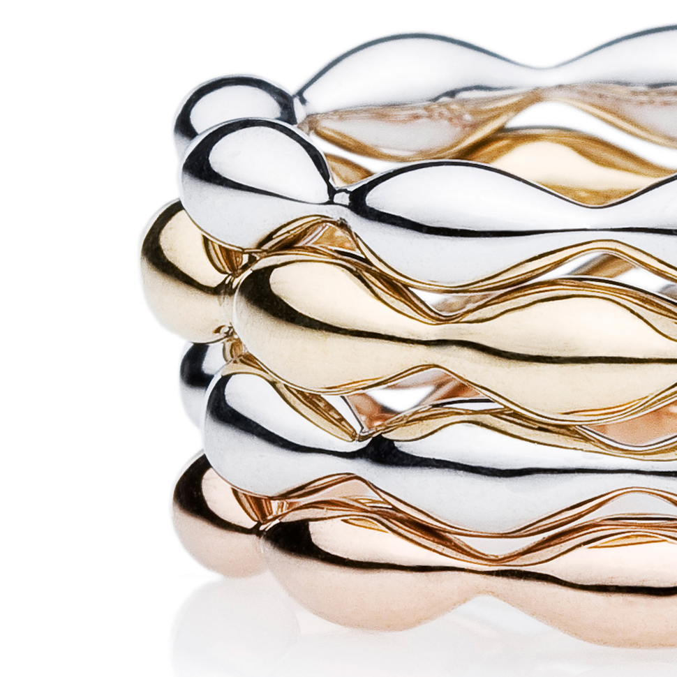 18K white, yellow and pink gold, stackable