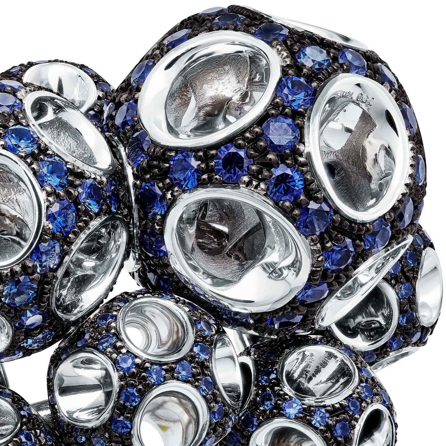 18K white gold, pavé sapphires